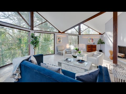 Originally designed by acclaimed architects Hoover and Hill, this dramatic octagonal Mid-Century Modern home has been thoughtfully updated and expanded over the years by local Lincoln architects, intent on preserving its unique design. A gracious bluestone patio welcomes you to the home where, surrounded by vaulted ceilings and walls of glass introducing magical treetop views, distinctive spiral staircases connect both the interior and exterior levels to flexible recreational spaces, a library and an updated, eat-in Chef's kitchen designed to inspire any chef with a fireplace and six-burner gas stove, double ovens, and expansive blue marble counters. A sophisticated, fire-placed Primary Bedroom Suite includes its own sitting room and leads to the indoor Endless Lap Pool on the lower level. Terraced grounds frame the outdoor pool, while a bonus studio space sits above the detached three-car garage. An ideal commuting location, perched above the reservoir and abutting conservation land.